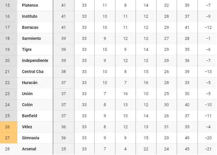 El rojinegro llegaba en zona de descenso con 34 puntos. Con la victoria, salió de ese lugar e igualó al rojiblanco que quedó con 37 unidades. Ahora, Vélez y Gimnasia de La Plata, ambos con 36, estarían jugando un desempate.