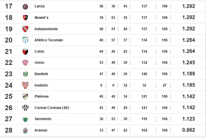 En la misma línea que los equipos santafesinos se encuentran Banfield y Huracán.