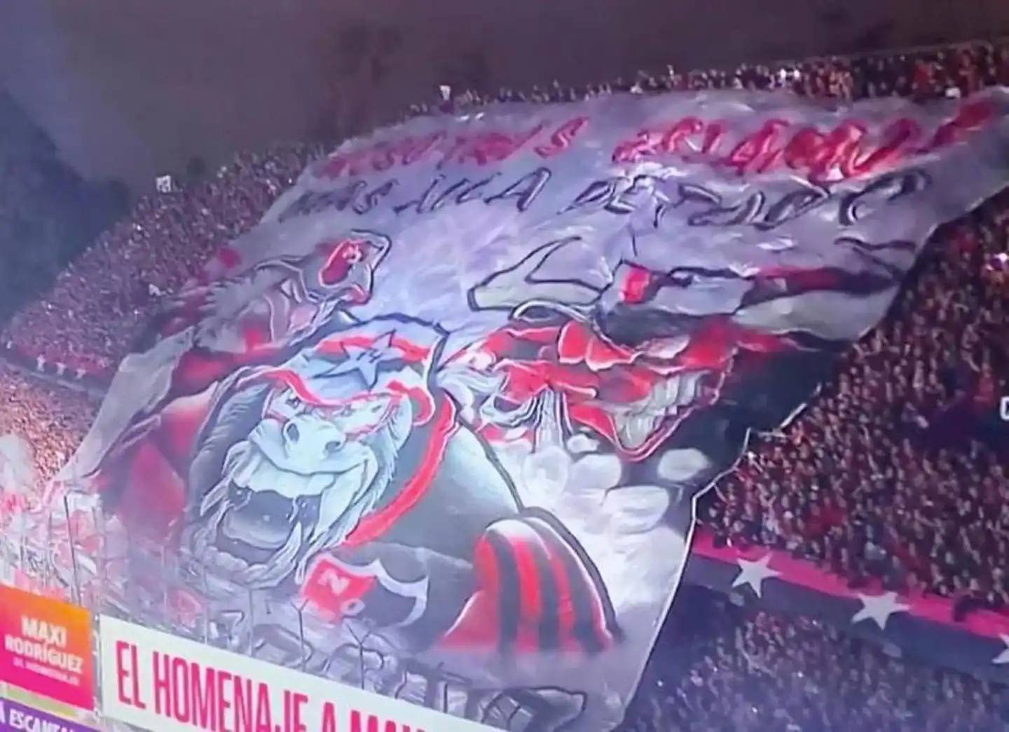 El “telón” se desplegó durante la despedida de Maxi Rodríguez, un evento que contó con la presencia de grandes estrellas del fútbol internacional, incluido Lionel Messi.