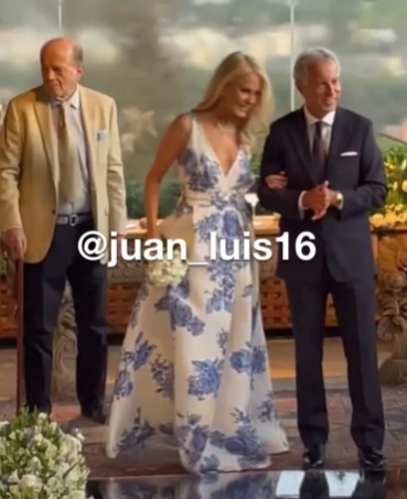 Para su tercera boda, Bolocco eligió un vestido de la diseñadora colombiana Silvia Tcherassi de color blanco con estampas florales en azulino.