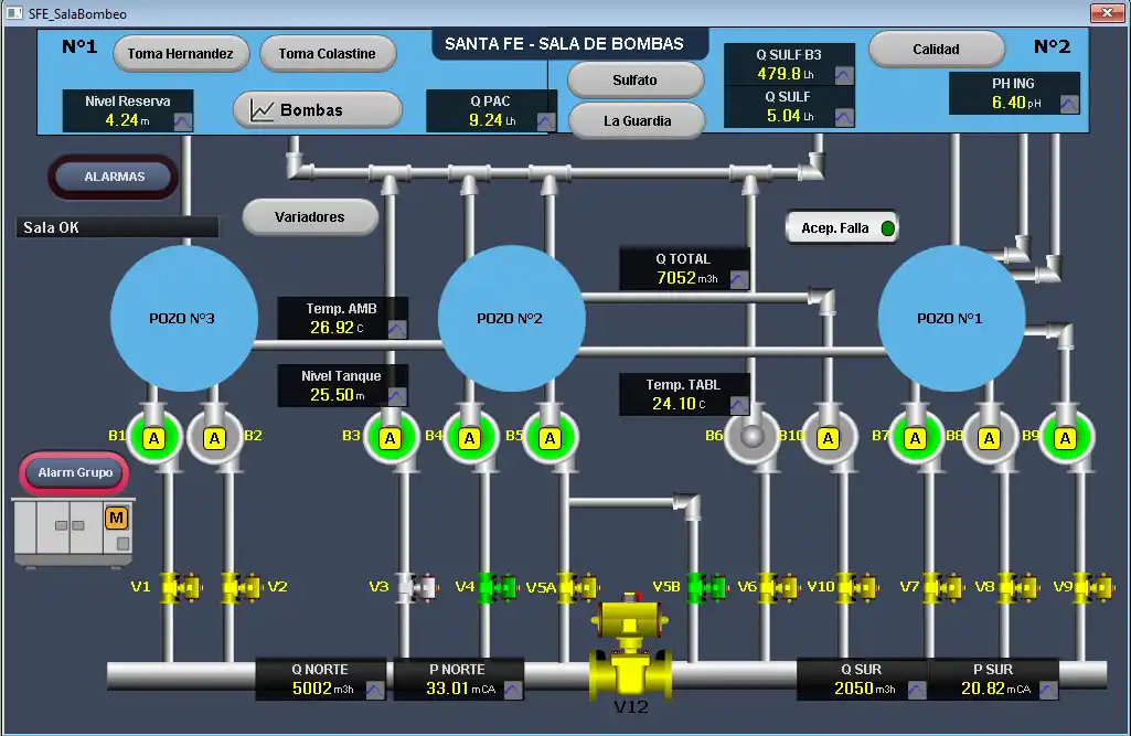 En el caso de la aplicación para la operación de las instalaciones en la ciudad de Santa Fe el sistema dispone de más de 30 pantallas de visualización como máscara gráfica de comando de dispositivos.