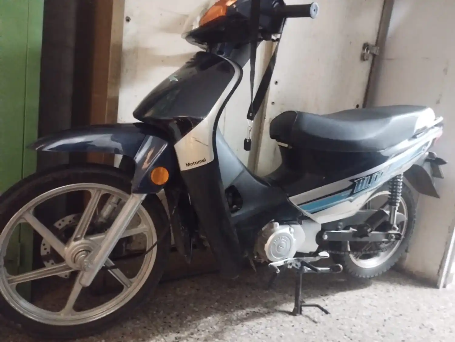 Una vez que la situación estuvo bajo control, se procedió al secuestro de la motocicleta involucrada en el incidente, una Motomel Blitz de 110cc de color negro con detalles en azul y gris.