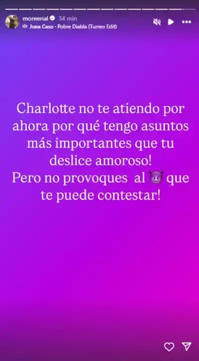 “Charlotte no te atiendo por ahora por qué tengo asuntos más importantes que tu deslice amoroso!”, contestó la influencer.