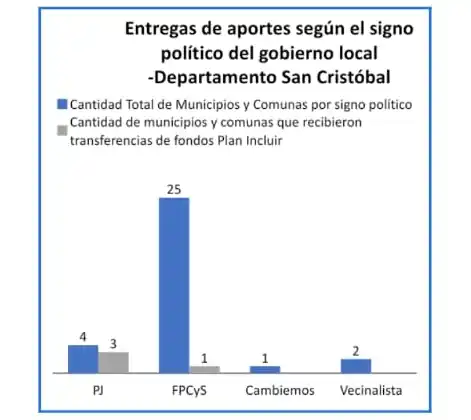 “Visto desde otro punto de vista, el 75% de municipios y comunas oficialistas recibieron recursos del Plan Incluir; mientras que sólo al 3,6% de los MMyCC de la oposición se le transfirieron fondos de citado programa”.