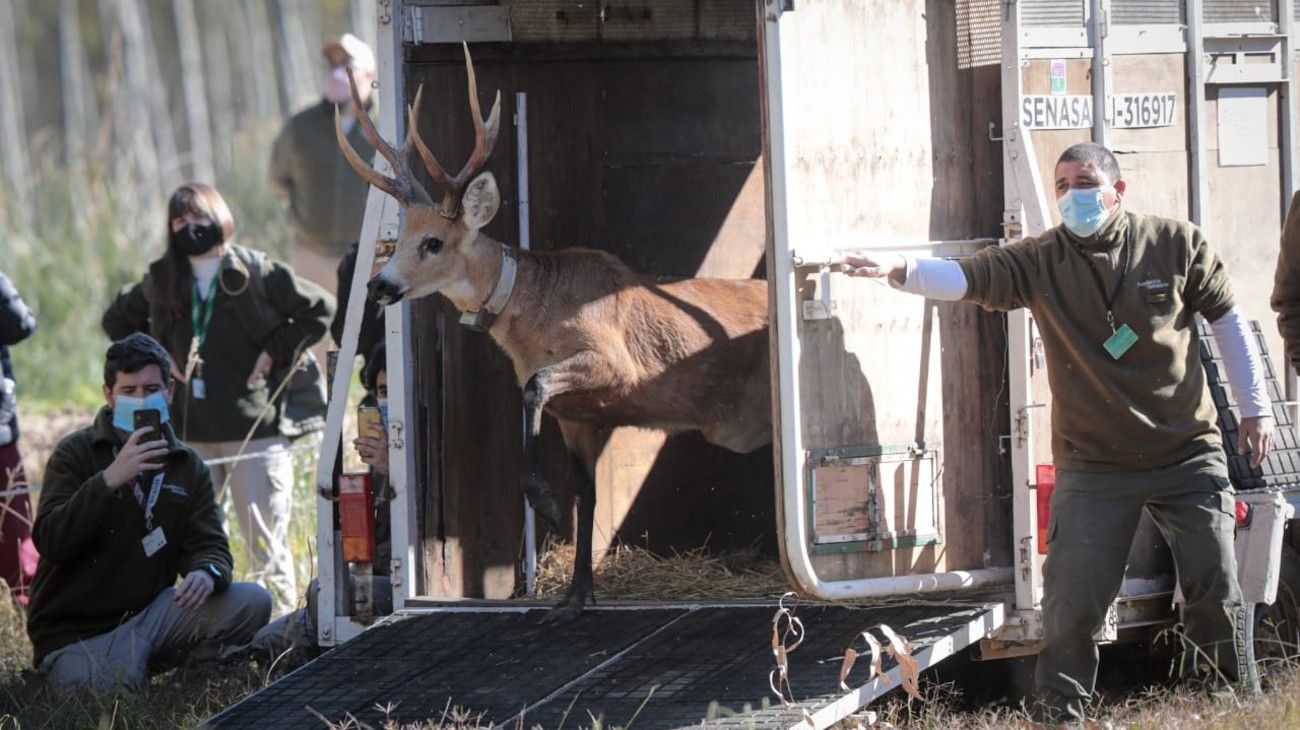 Hace dos meses, los trabajadores de la empresa forestal Arauco, en la zona de Zárate, encontraron a un ciervo de los pantanos lastimado y debilitado en uno de los senderos del enorme lugar (allí se hace explotación para producir celulosa y otros derivados de la madera de manera responsable). De inmediato dieron aviso a las autoridades y, para atenderlo, fueron los veterinarios de la Fundación Temaikèn. Este martes 18 de mayo, con revista Weekend como uno de los testigos, el ciervo macho adulto, al que le pusieron Aukán, volvió rápidamente a su hábitat natural, restablecido, con la herida curada y con toda la energía, ante los precavidos espectadores que lo vimos alejarse rápidamente hacia el bosque.