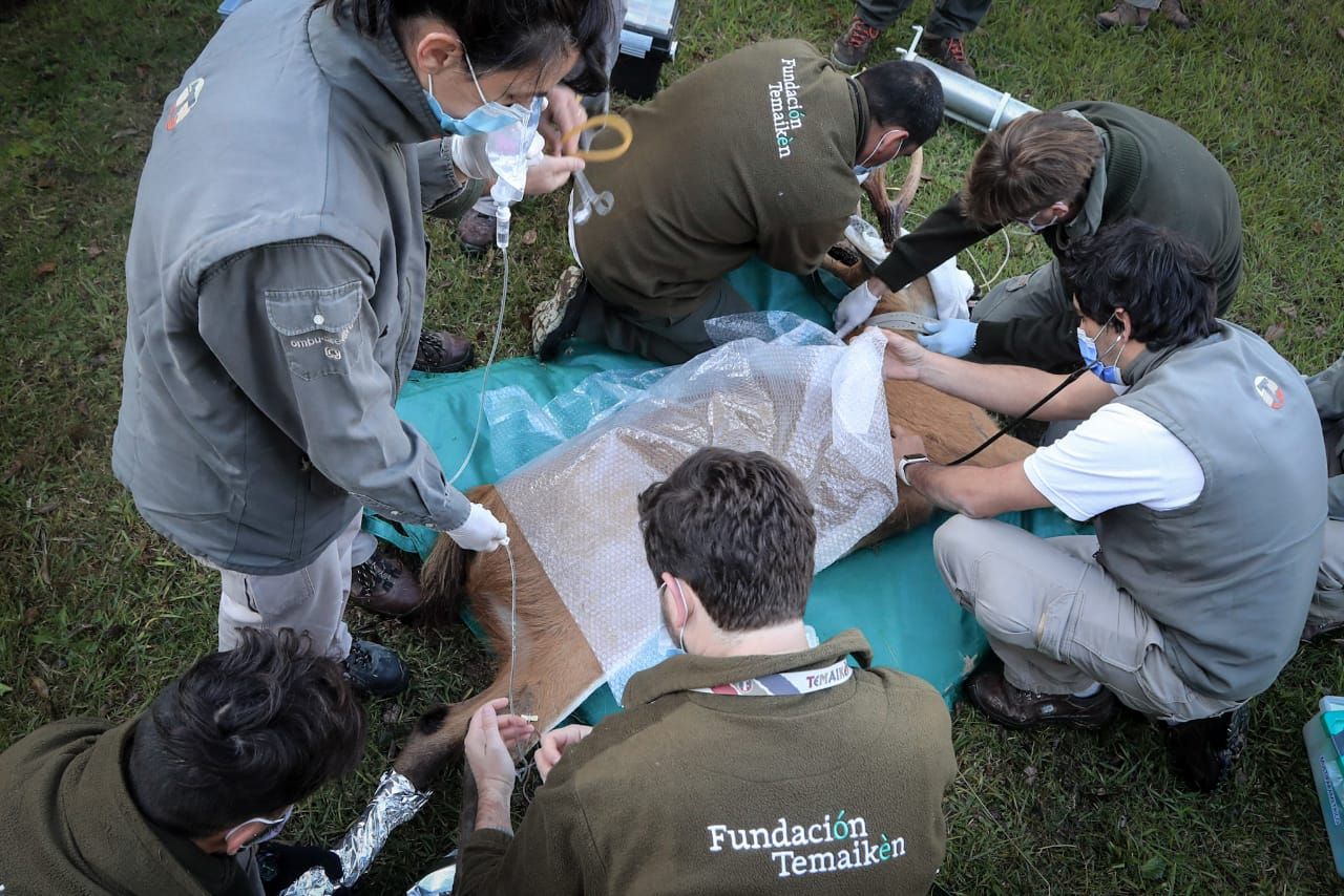Ellos tienen un protocolo de acción ante el aviso de avistaje de animales lastimados: se acercan a hacer reconocimiento del daño, tratan de curarlo sin sacarlo de su hábitat y sólo lo trasladan, como fue el caso de Aukán, un imponente macho adulto con grandes astas, porque “la herida que tenía en la cara estaba en muy mal estado y el ciervo ya no se levantaba, así lo contó después de la suelta” Lucas Gómez Ríos, de conservación e investigación de la Fundación Temaiken. Claro que para trasladarlo al centro de recuperación de la fundación, con un porte de 120 kg, tuvieron que dormirlo, lo mismo que hicieron para el viaje de regreso en un batán, momento en que le colocaron un collar con GPS para seguir sus movimientos.
