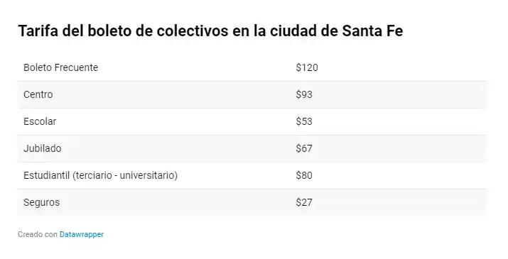 Desde este miércoles rige el nuevo cuadro tarifario para el transporte público de pasajeros de la ciudad de Santa Fe. Así las cosas, el precio base del boleto es $ 120.