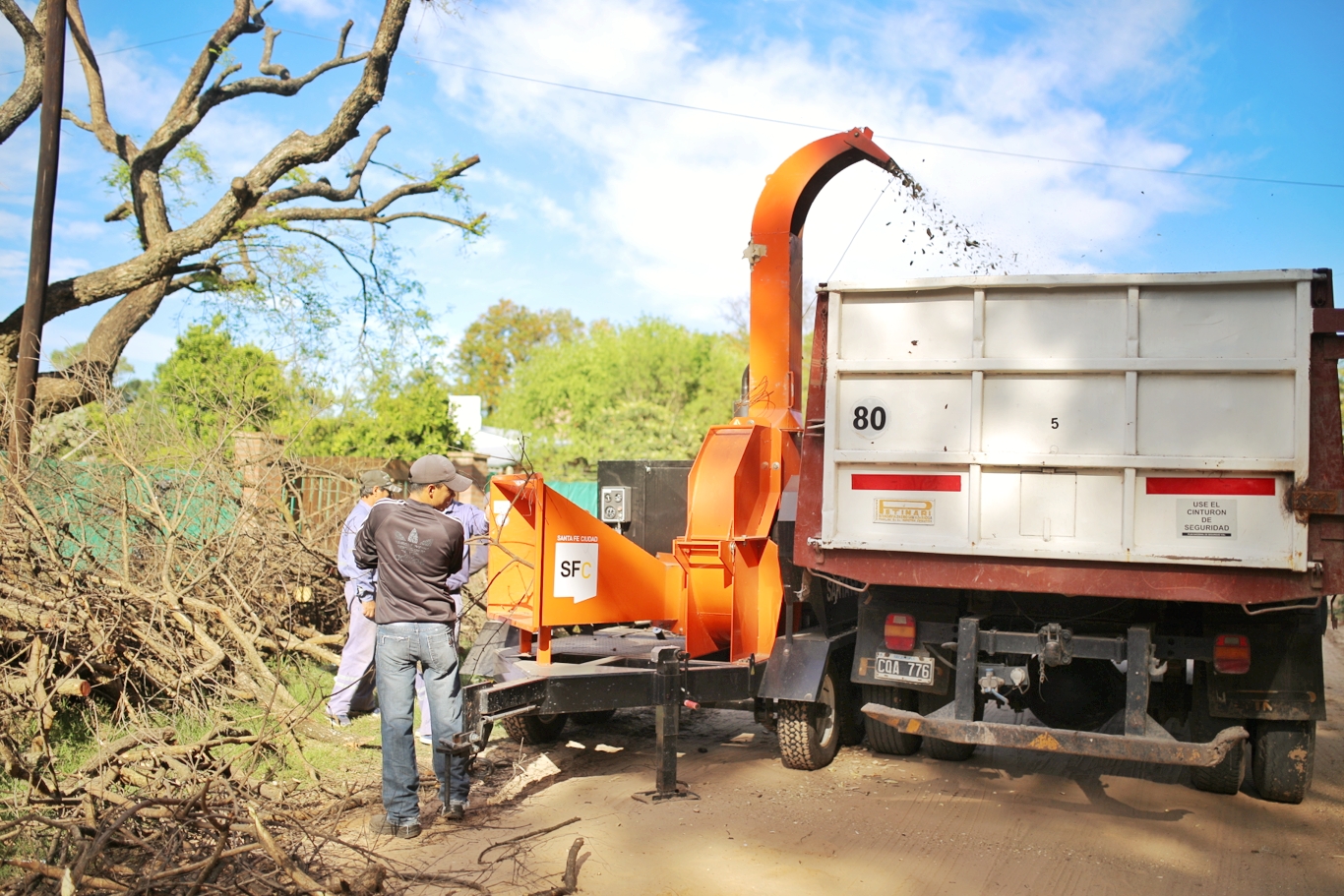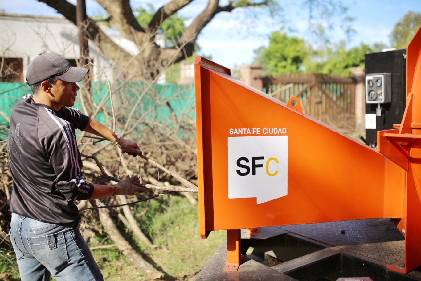 Se trata de una procesadora de restos de poda que permite triturar las ramas y troncos de árboles en pequeños trozos de madera para luego ser reutilizados en tareas de paisajismo y compostaje. Además, reduce la cantidad de material derivado al relleno sanitario y un ahorro significativo en materia logística.