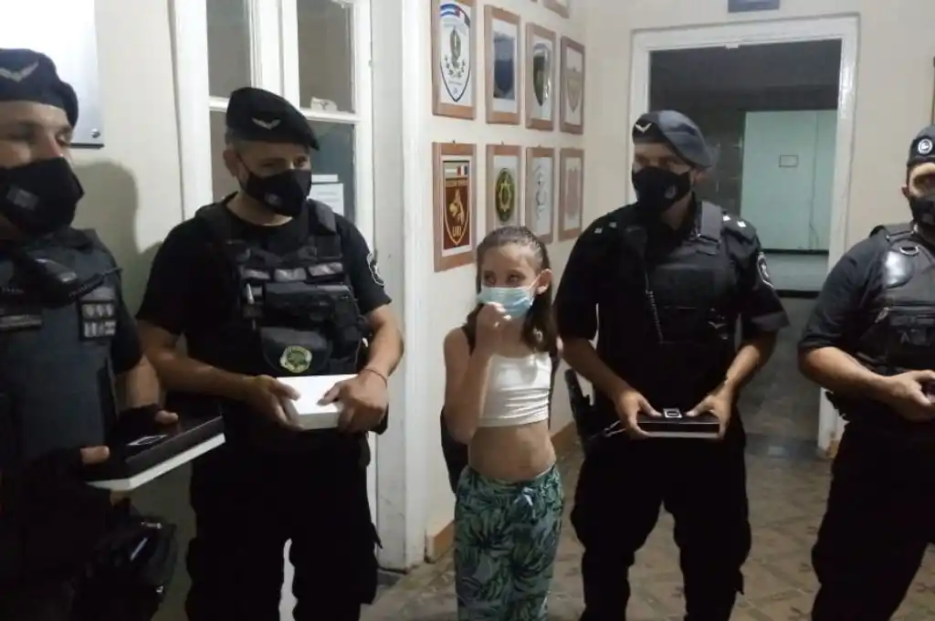 En tanto la niña, antes de retirarse de la dependencia, recibió un obsequio por parte del personal policial.