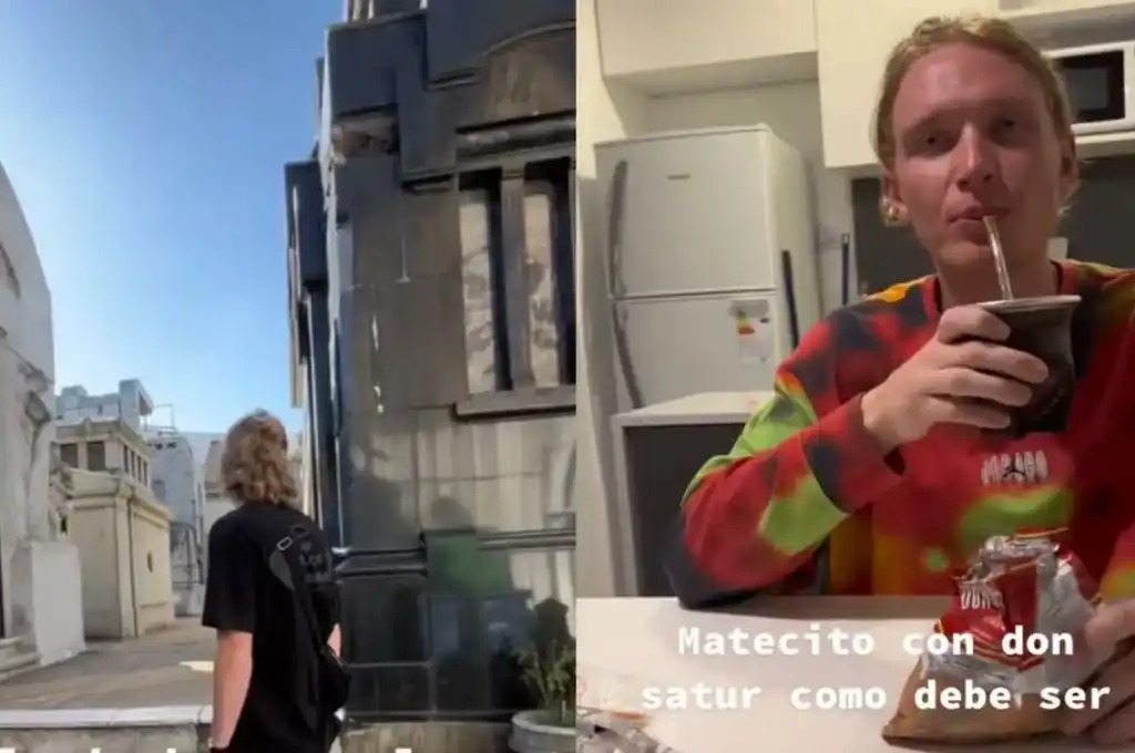 Seguido a eso, la chica mostró que ambos fueron a recorrer el cementerio de Recoleta donde sostuvo que quedó “flashado”. Después, lo grabó lavando los platos al ritmo de la música.