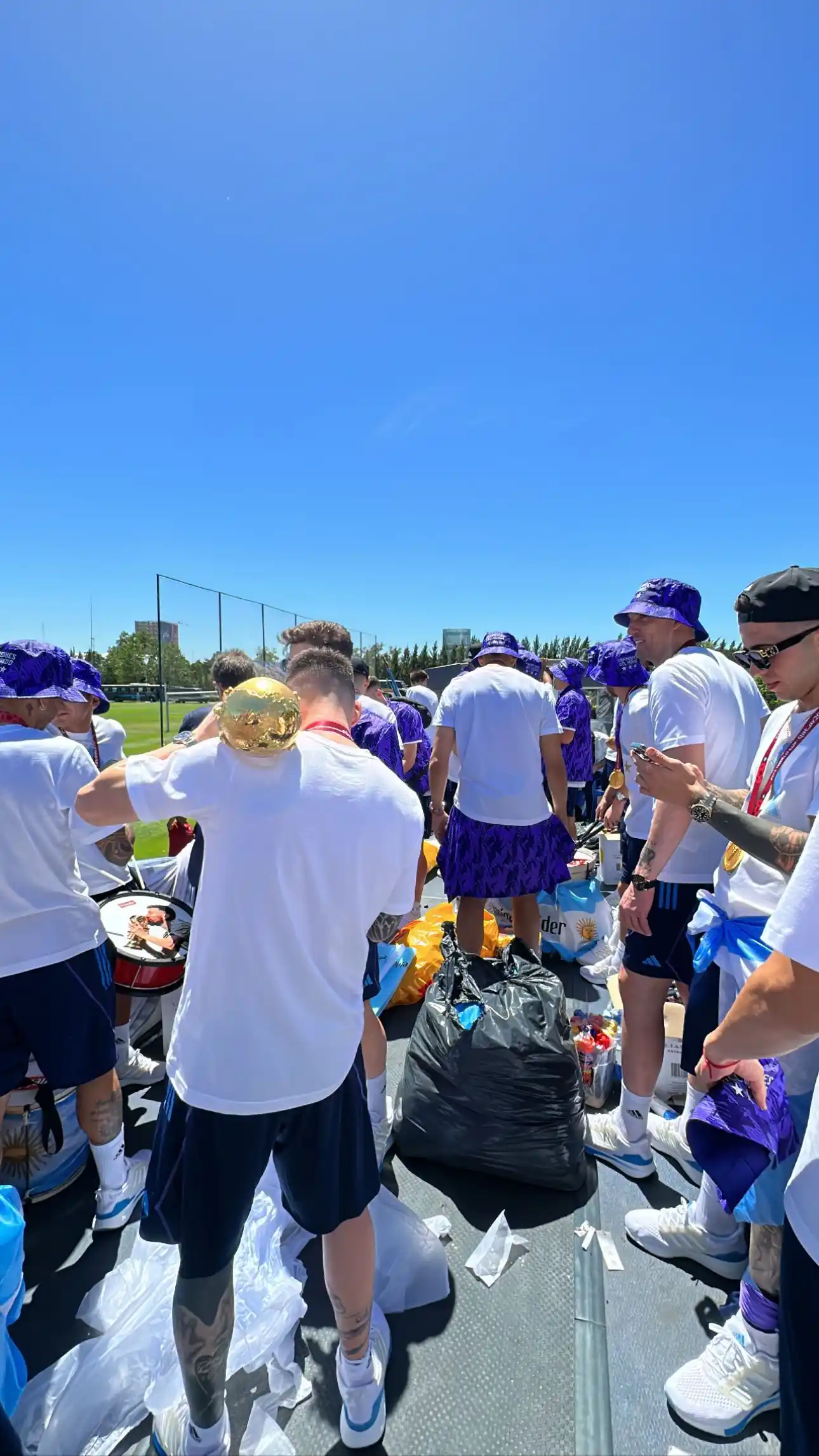 El micro partió desde el predio de la Asociación del Fútbol Argentino (AFA) en Ezeiza una hora antes de lo previsto a raíz de la marea de gente que salió a las calles para festejar la obtención de la tercera Copa del Mundo.