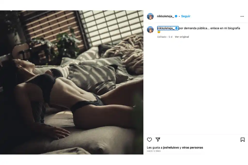 “A pedido del público…enlace en mi biografía”, escribió Nikkole junto a un posteo en su cuenta de Instagram, donde tiene más de 380 mil seguidores. En la foto posó en ropa interior recostada sobre una cama.