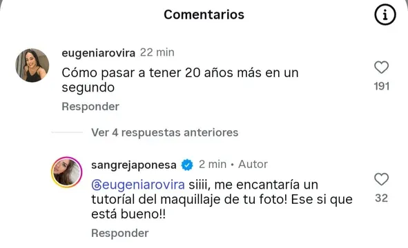 Sin filtros, la China la invitó a ella a lucir su look: “Siiii, me encantaría un tutorial del maquillaje de tu foto! Ese sí que está bueno!!”.