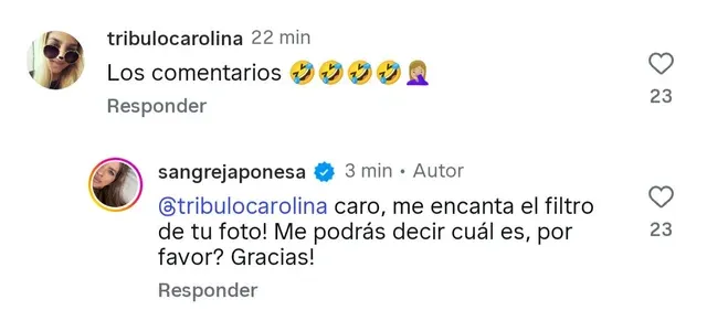 “Caro, me encanta el filtro de tu foto! Me podrás decir cuál es, por favor? Gracias!”, lanzó filosa.