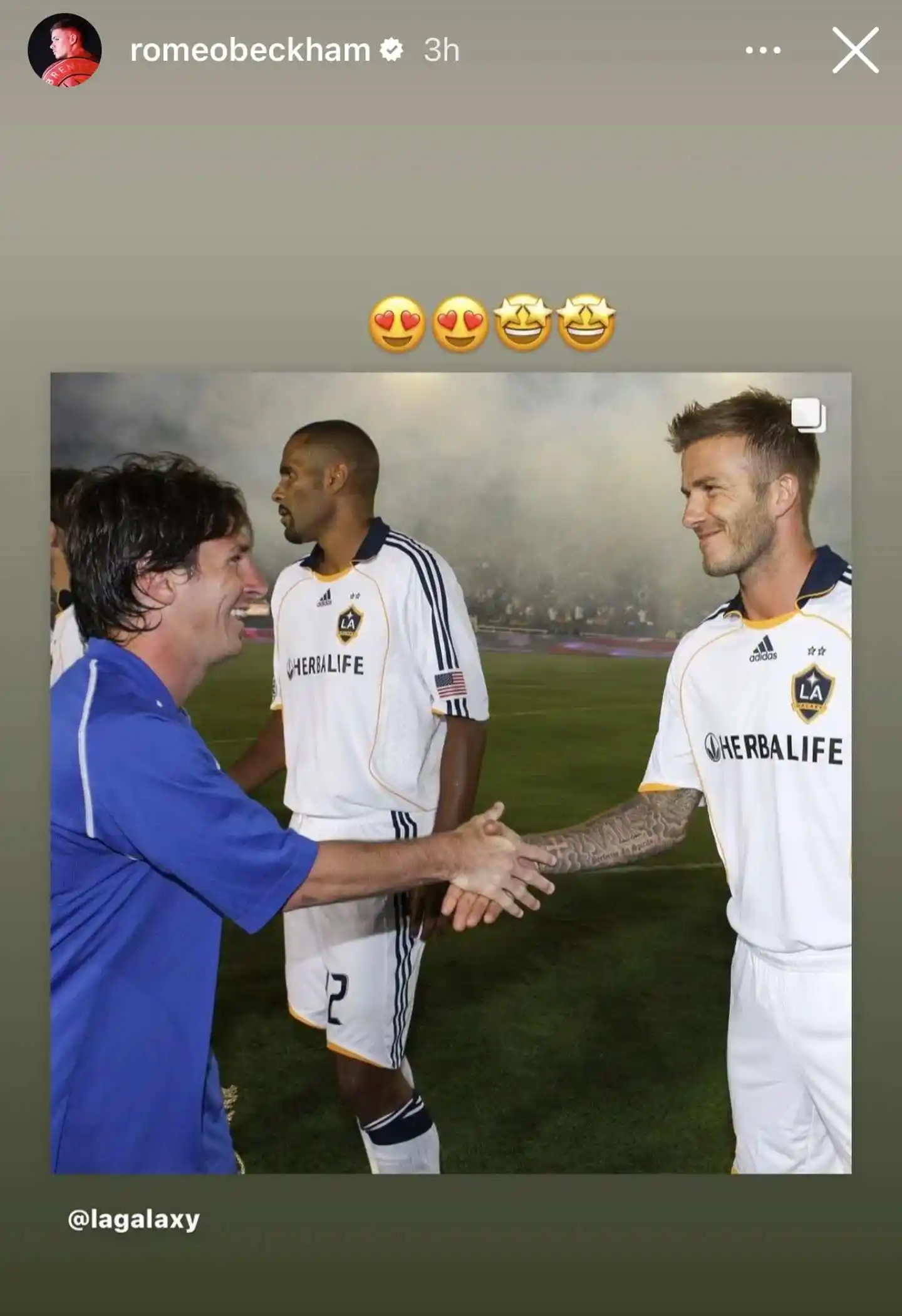 Romeo, en sus redes sociales, festejó la consagración de Messi en el Mundial de Qatar. Y en marzo, del 2022, tuvo la chance de sacarse una foto con el rosariono que lucía un polémico look.