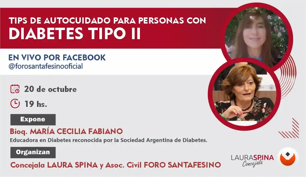 Como una forma de dar apoyo a uno de los grupos de riesgo frente al Covid, la concejala Laura Spina (UCR-FPCyS) junto a la Asociación Civil Foro Santafesino anunciaron que realizarán una charla de la mano de una experta en el tema, Ma. Cecilia Fabiano, bioquímica y educadora certificada en diabetes.