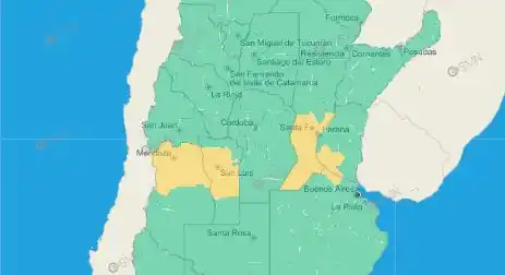 El Servicio Meteorológico Nacional renovó este martes por la tarde la advertencia amarilla por altas temperaturas para el centro y sur de la provincia de Santa Fe, así como también para áreas de Entre Ríos, San Luis y Mendoza.