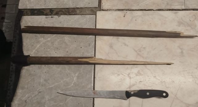Según trascendió, la agresión ocurrió alrededor de las 2 de la mañana de este domingo. Si bien se desconocen las razones de la gresca, la policía capturó las armas utilizadas: un cuchillo de cocina con una hoja de 34 centímetros y un palo partidos en dos pedazos, ambos con punta.