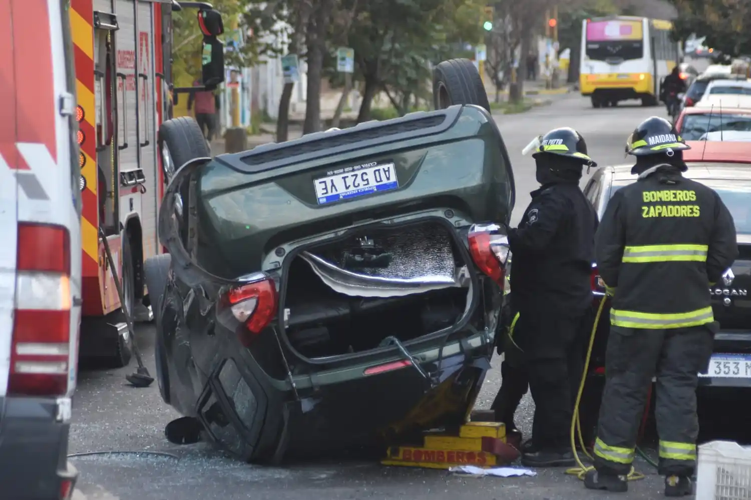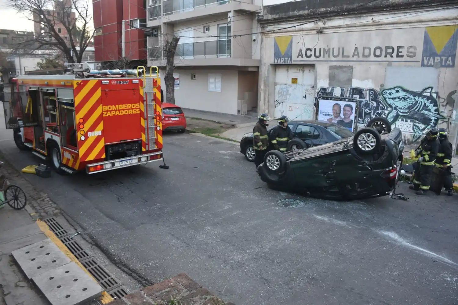 Santa Fe: un fuerte choque terminó con el vuelco de un auto en el macrocentro
