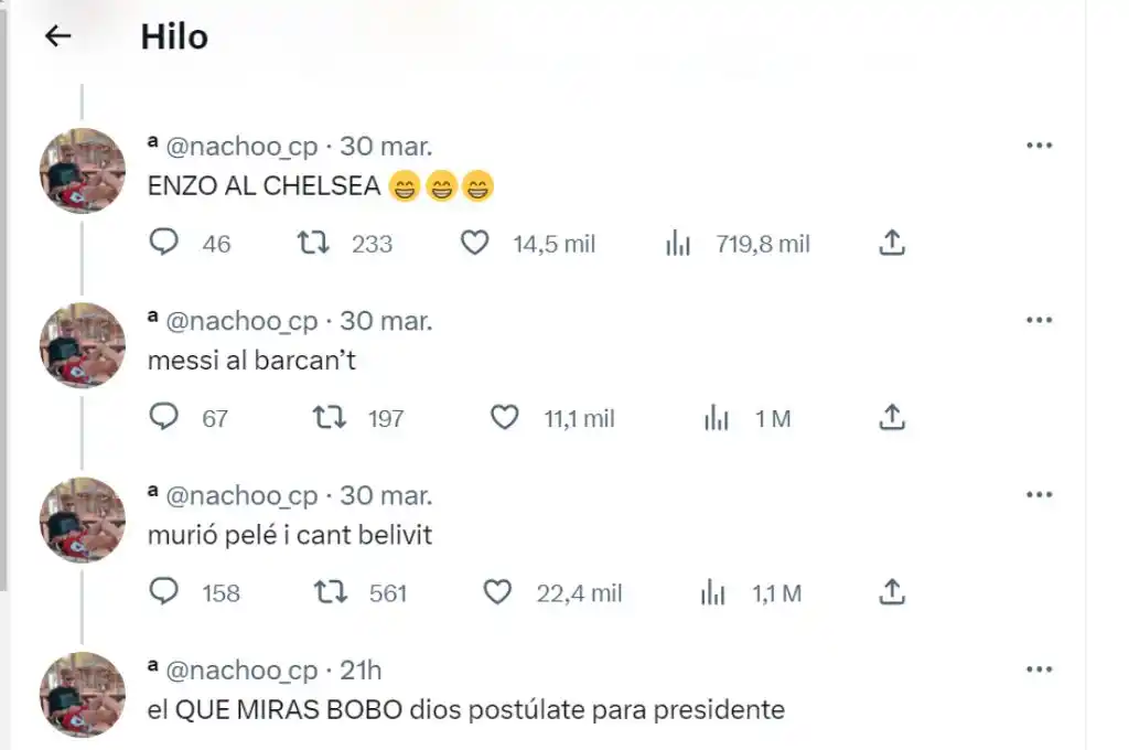 Amante del fútbol, la mayoría de las noticias que le importaron a Nacho tuvieron que ver con este deporte, especialmente tras la consagración histórica de Argentina en el Mundial. Si bien los participantes de Gran Hermano pudieron ver los partidos, Castañares se perdió todo el folklore por detrás, incluyendo el icónico: “¿Qué mirás bobo?” de Lionel Messi, post-encuentro con Holanda. “Postulate para presidente”, opinó sobre el 10 de la Selección al ver por primera vez este momento.