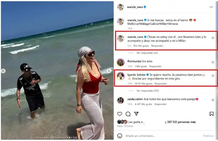 Mientras Mauro Icardi presume su relación con la China Suárez en Turquía, Wanda Nara viajó a Europa para reencontrarse con su ex novio L-Gante, y sumarse al tour de este en España. En medio de los rumores de una reconciliación entre ambos, la empresaria desmintió estar otra vez en pareja.