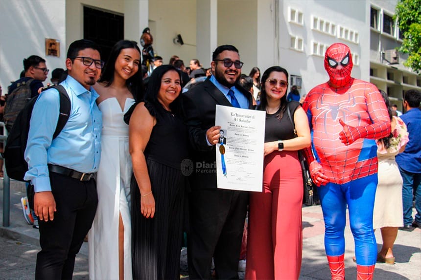El Dr. Bayron Farid Henríquez Córdoba, quien se graduó de la carrera de Medicina, compartió en redes sociales una foto de su padre, vestido con el traje de Spiderman, acompañándolo en su ceremonia de graduación.