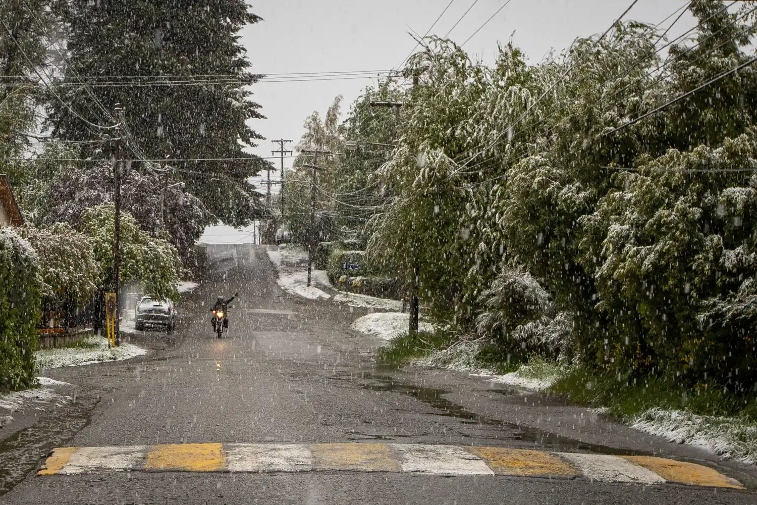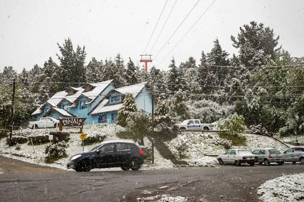 La nevada acumuló varios centímetros en las zonas altas de la ciudad turística rionegrina, por lo que las autoridades de Protección Civil recomendaron circular con precaución en todo el casco urbano, aunque no se registraron inconvenientes en el tránsito vehicular.