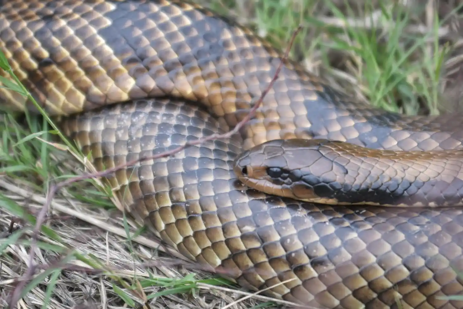 Se trata de dos ejemplares de Ñacaniná (Hydrodynastes gigas), un tipo de serpiente que habita principalmente en ambientes acuáticos.
